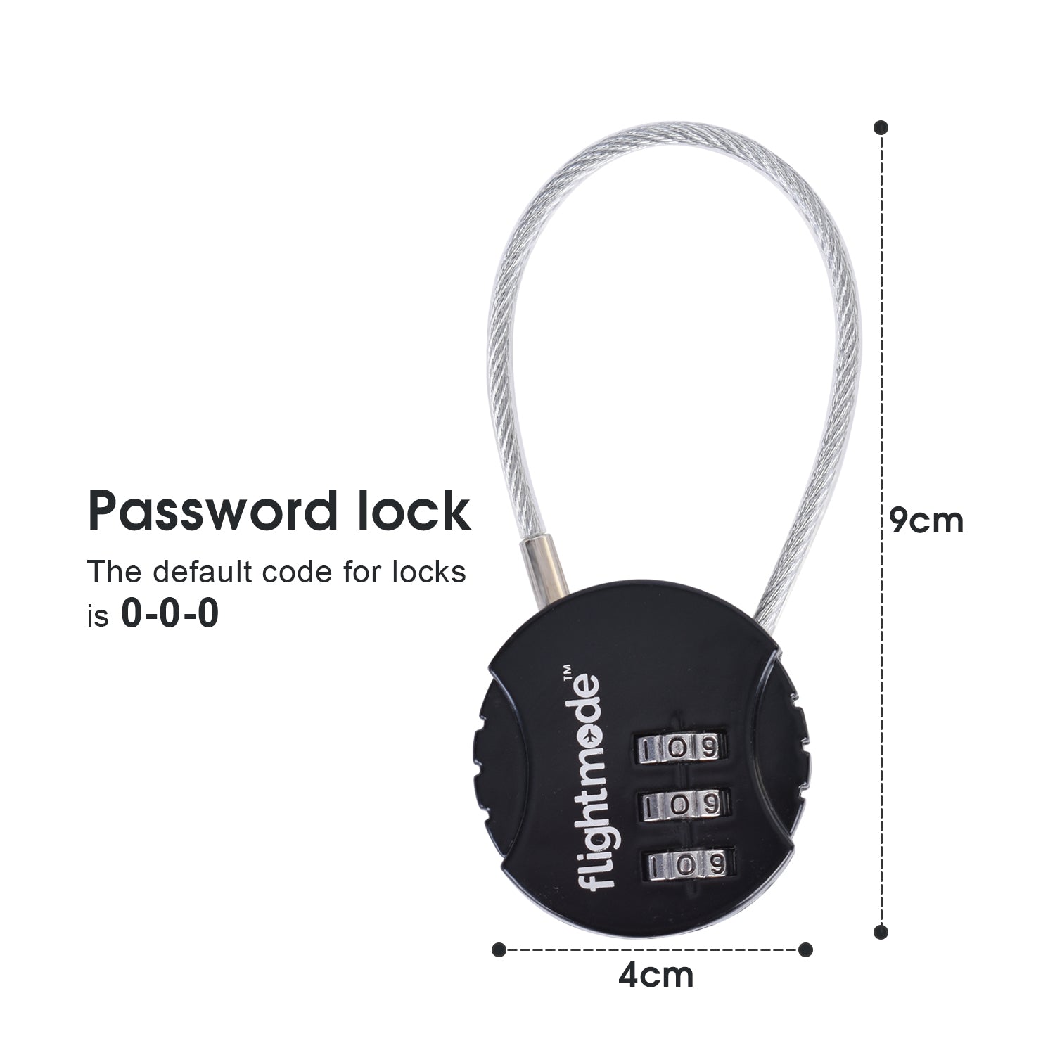 1. Place the lock so the Flightmode logo faces you. The default combination is 0-0-0.